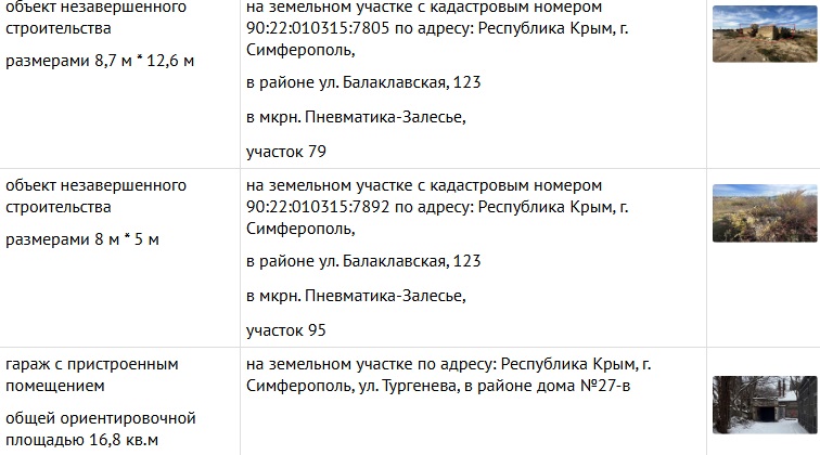 Два объекта расположены в районе ул. Балаклавская и один по ул. Тургенева. Установленный срок для сноса самовольных построек - 3 месяца со дня размещения сообщения о планируемом сносе самовольной постройки на официальном сайте администрации города Симферополя. |