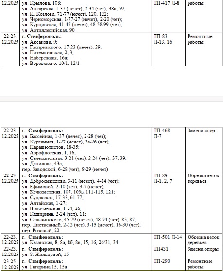 Специалисты «Крымэнерго» продолжат сегодня ремонтные работы на линиях электропередач в Симферополе.