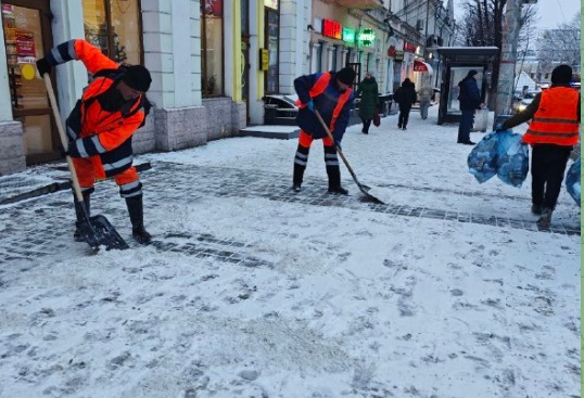 На улицах города ежедневно работают около 450 дворников. Помимо очистки территорий, проводится обработка пешеходных зон, тротуаров и остановок общественного транспорта противогололёдными материалами для обеспечения безопасносного и комфортного передвижения пешеходов. Помимо уборки снега, активно используется специальный реагент для предотвращения образования наледи на пешеходных дорожках, тротуарах и остановках общественного транспорта. |