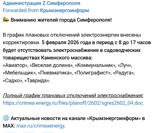 Кроме того, сегодня не будет света у потребителей на почти 40 улицах Симферополя.