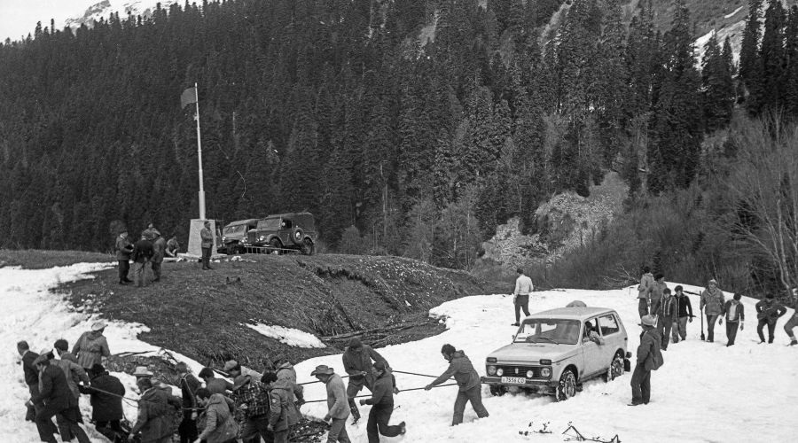 Фото: Георгий Анастасиади. Майский поход накануне Дня Победы к воинскому обелиску на развилке туристских троп перевалов Аишхо-1 и Аишхо-2, 1985 год. |