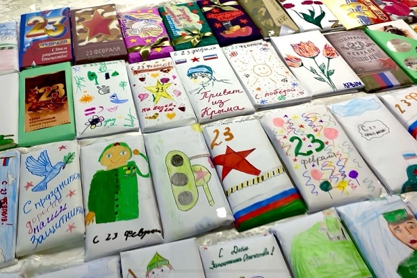 Каждая обертка для шоколадок получилась оригинальной, поскольку их раскрасили юные читатели, писав добрые, искренние пожелания бойцам. Весь собранный «фронтовой шоколад» будет передан нашим защитникам. Ребята уверены: такой подарок согреет сердца солдат, напомнит им о доме, семье и о том, что здесь их ждут, верят и поддерживают, сообщает пресс-служба администрации Симферополя. |