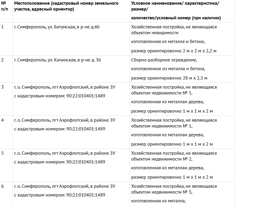 Это в том числе - хозяйственные постройки, сборно-разборные ограждения металлические и бетонные. пгт Большая часть из них находится пгт Аэрофлотский, сообщает мэрия.
